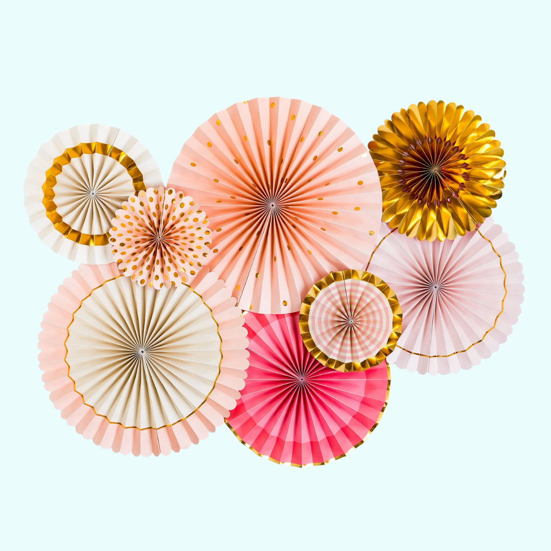 Set the stage for one last fling before the ring with these glam party fans! Any chic bride to be will be thrilled with the stylish party that these fans will inspire. Soft pink hues and gold foil accents make these fans perfect for a fabulous selfie backdrop that your bride tribe will adore.