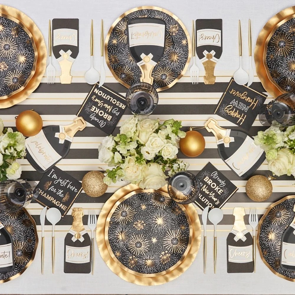 "Indulge in the allure of these exquisite paper plates that are sure to ignite your urge to throw a party at the earliest opportunity! Adorned with a delicate ruffled foil edge and adorned with captivating golden fireworks, these plates exude elegance, perfect for elevating your holiday gatherings. Leave your guests awe-inspired by these impeccable pieces that defy the norms of paper plates! For a harmonious setup, pair them with our Bella plastic cutlery, coordinating napkins, paper baking cups, and party picks!"