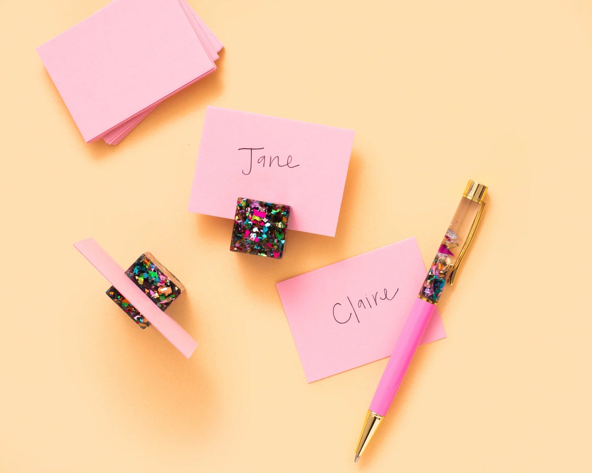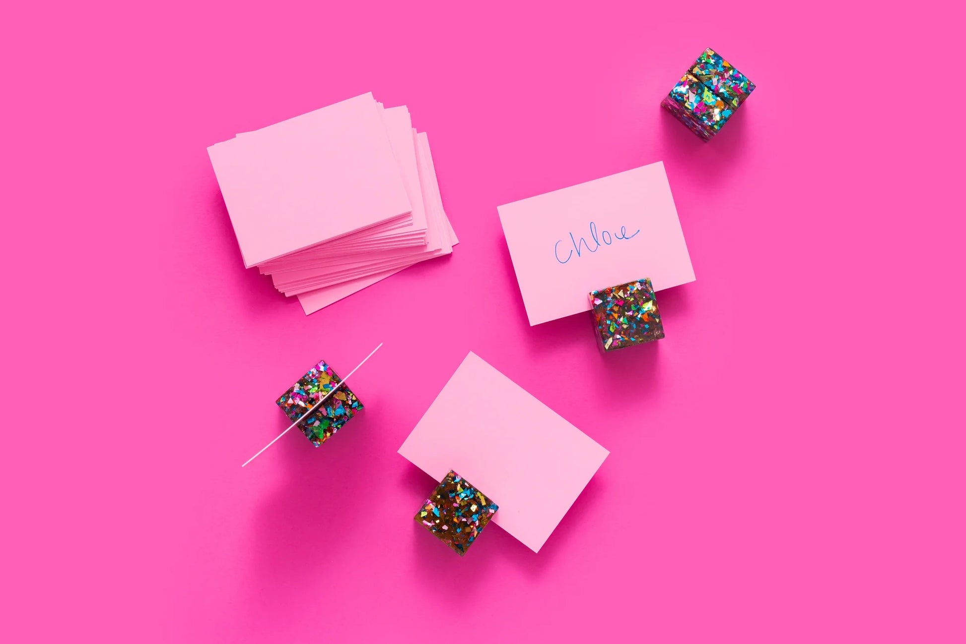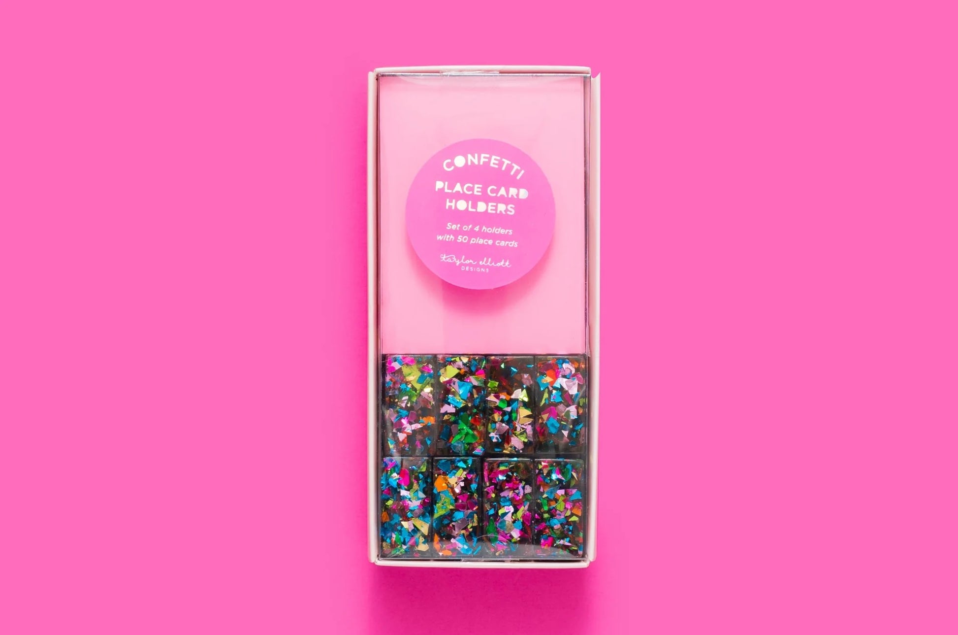 Add confetti and sparkle to your next celebration with our place card holders! Perfect for place settings at bridal showers, baby showers, or birthdays.