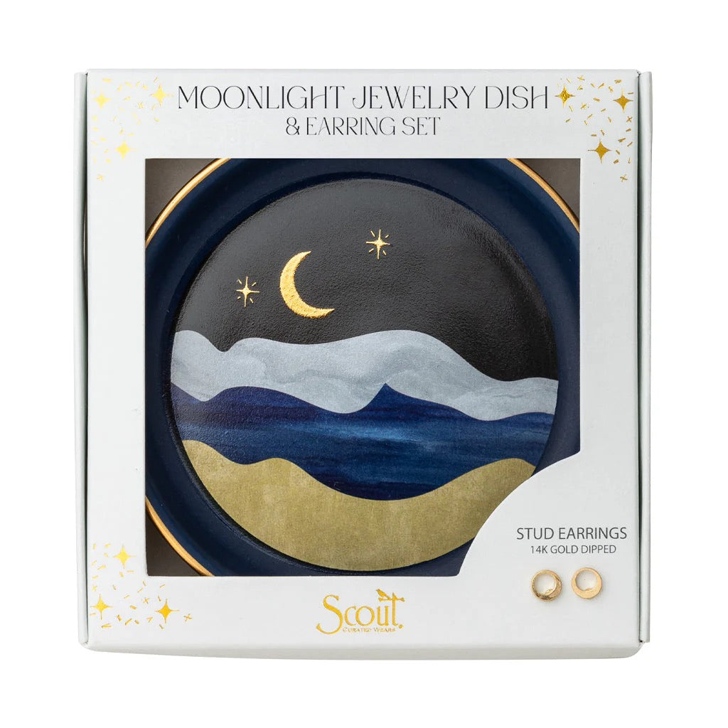 Jewelry Dish & Stud Earring Set - Moonlight/Midnight Blue
