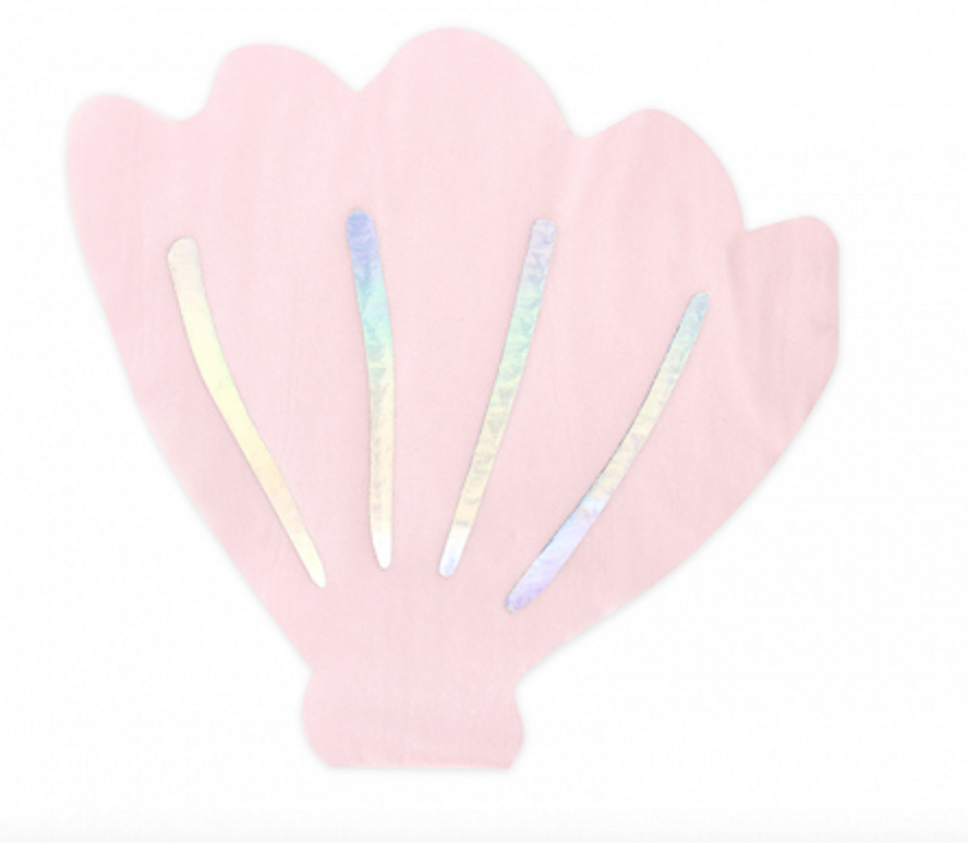 These small paper napkins feature iridescent foil and a fun pink shell shape that's perfect for a mermaid birthday party or narwhal party. . Mixing and matching these seashell napkins with other sea-themed party supplies will turn your party into a under the sea celebration!